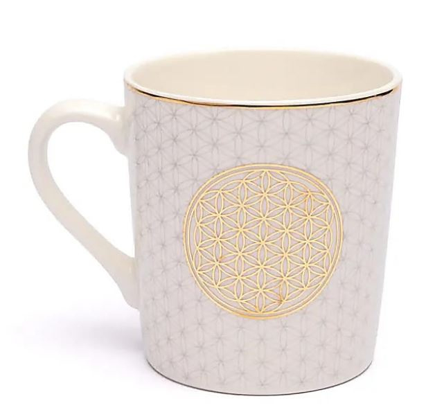 Mok/kopje Bloem des levens wit/goud