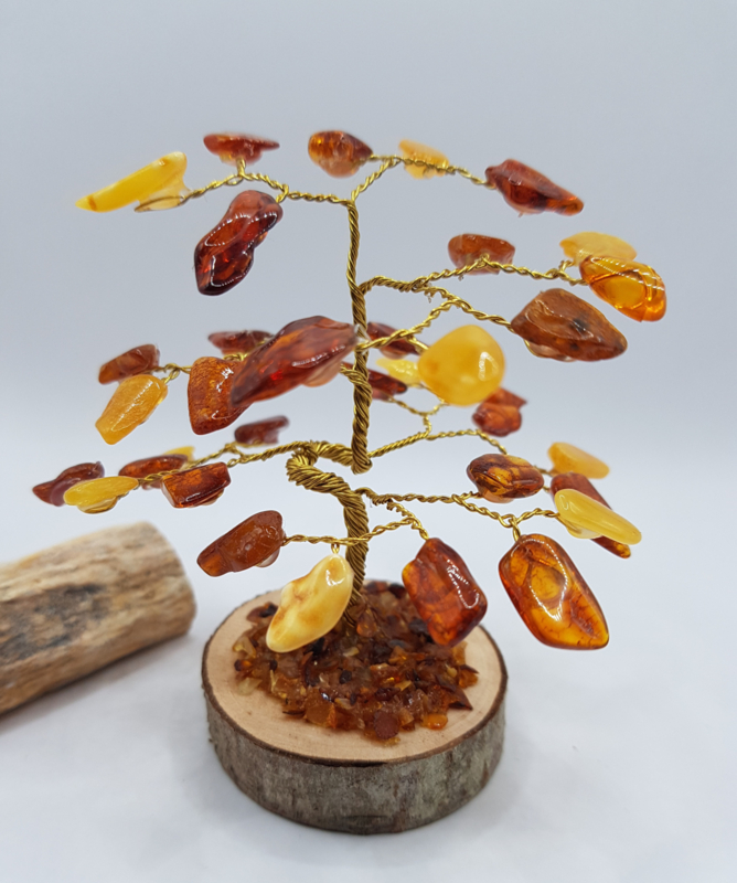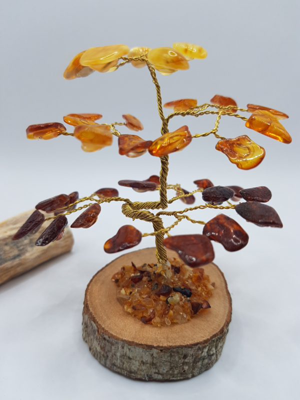Barnsteen/Amber boom klein - nr.1Prachtige handgemaakte Amber/Barnsteen boom op een houten schijf.